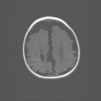 Лизэнцефалия—недоразвитие корковой пластинки и мозговых извилин в результате нарушения миграции нейронов коры. Поверхность мозговых полушарий гладкая. Микроскопически выявляется отсутствие нормальных слоев коры и скопление групп нейронов в подкорковом белом веществе.