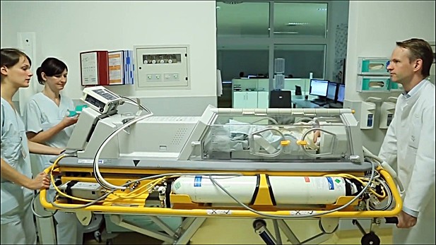 Также инкубаторная система может комплектоваться специальной модификацей каталки для транспортировки больных в машине скорой помощи, если МРТ детям необходимо провести в другом здании или другом медицинском учреждении.